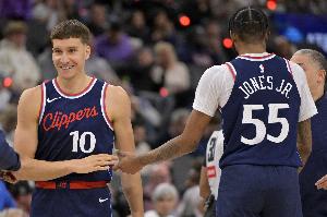 對(duì)此,快船記者Law Murray發(fā)推寫(xiě)道:“在哈登、萊昂納德、祖巴茨身邊搭配博格丹/巴圖姆、瓊斯/鄧恩的8.5分鐘里,勇士占據(jù)絕對(duì)優(yōu)勢(shì),比分是27-14。之后快船換上了科林斯和大洛。”