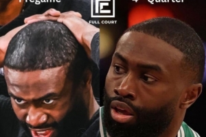 據(jù)此前報(bào)道,綠軍球星杰倫-布朗遭遇了“發(fā)際線危機(jī)”,本賽季至今已經(jīng)多次將自己的發(fā)際線粉蹭到對(duì)手球衣上。