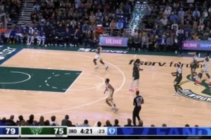 GIF-庫(kù)里被提前犯規(guī) 超遠(yuǎn)三分隨手扔進(jìn)網(wǎng)窩