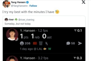 某網(wǎng)友在社媒發(fā)文表示賽季至今的5場比賽小楊得分依次是2分、2分、2分、1分、2分,并配文寫道:“我知道他會打出來,但不是現(xiàn)在!”。假冒楊瀚森賬號則在社媒上回復(fù)道:“我會在能獲得的時間里用盡全力。”這一回復(fù)被“Sporting News”的編輯誤以為是楊瀚森本尊于是他們撰寫了新聞并發(fā)出(如下所示)。