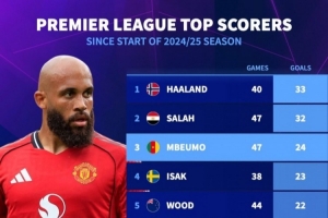 體育資訊10月31日訊 《轉會市場》統(tǒng)計了上賽季至今的英超射手榜,哈蘭德已經(jīng)反超薩拉赫居首。
