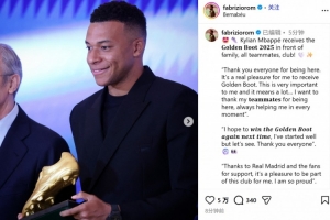 姆巴佩也發(fā)表了獲獎感言:"感謝大家的到來。能夠贏得(歐洲)金靴獎,對我而言是莫大榮幸,也意義非凡……我要感謝我的隊友們,感謝他們一直陪伴在我的身邊,始終給予我支持。"
