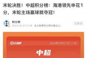 體育資訊10月31日訊 上賽季中超第29輪結(jié)束,海港領(lǐng)先申花1分,兩隊末輪決勝。