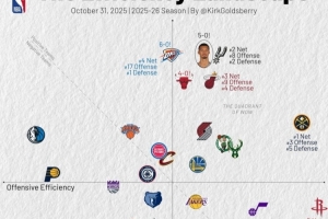 開季至今攻防效率:進(jìn)攻火箭第1 防守雷霆1馬刺2 湖勇攻防均中游