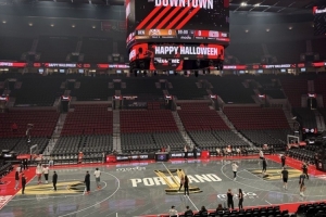新賽季NBA杯首戰(zhàn)遇上萬圣節(jié)!開拓者隊記曬球隊主場地板