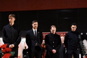 體育資訊11月4日訊 北京時間周三凌晨的歐冠聯(lián)賽階段第4輪比賽,皇馬將在安菲爾德挑戰(zhàn)利物浦。本場比賽之前,皇馬主帥阿隆索、后衛(wèi)赫伊森和阿諾德、公關總監(jiān)布特拉格諾一行來到若塔紀念碑前,阿隆索獻上鮮花向這名7月因車禍不幸離世的利物浦前鋒表達敬意。