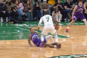 GIF-杰倫-布朗遭飛鏟,沒有被吹犯規(guī)