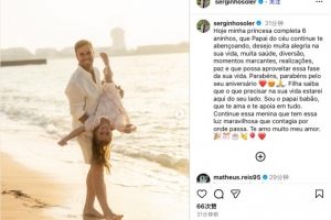 塞爾吉尼奧寫道:“今天我的小公主滿6歲了,愿在天堂的家人們繼續(xù)保佑你,愿你平安喜樂,健康成長,生活五彩斑斕,享受生活帶來的樂趣。爸爸會(huì)一直陪在你身邊,永遠(yuǎn)愛你,支持你做想做的事情。我愛你,親愛的。”