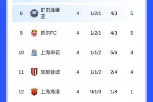 包攬倒數(shù)前三!亞冠積分榜:海港4輪1分墊底,蓉城申花倒數(shù)二三