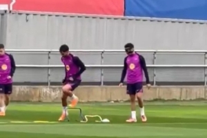 David Ibá?ez在社交媒體曬出巴薩訓(xùn)練視頻,并配文寫道:“巴薩今日進行訓(xùn)練,備戰(zhàn)對陣塞爾塔的比賽。埃里克-加西亞佩戴面具訓(xùn)練,克里斯滕森明日也可能隨隊出征?!?/p>
