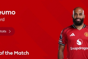 本場比賽曼聯(lián)前鋒姆伯莫發(fā)揮出色,打進(jìn)球隊(duì)首粒進(jìn)球,賽后他也當(dāng)選英超官方球迷票選全場最佳球員。