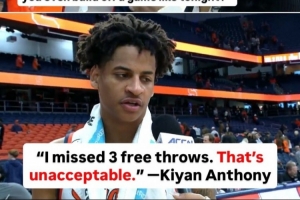 體育資訊11月10日訊 在昨天的NCAA常規(guī)賽,雪城大學(xué)以83-43狂勝德拉瓦州立大學(xué),取得開季兩連勝??仿 ぐ矕|尼之子基揚·安東尼迎來大學(xué)生涯第一次首發(fā),他11投8中,三分4中2、罰球4中1,砍下19分3籃板4助攻1搶斷,沒有失誤。
