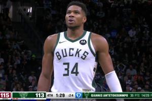 這時(shí),火箭已經(jīng)打了雄鹿17-5,比賽只剩1分鐘