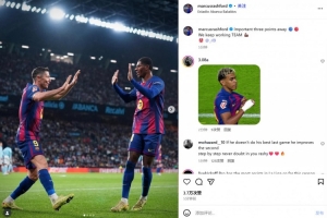 拉什福德社媒曬同萊萬慶祝照:重要的客場3分,我們繼續(xù)努力