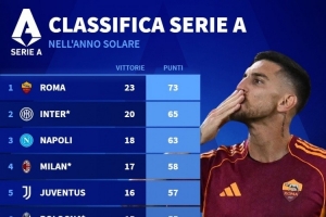 2025年意甲積分榜:羅馬73分居首,國米65分、那不勒斯63分