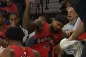 “很多人都認(rèn)為他應(yīng)該站起來道歉。我理解他的沮喪,他在比賽中摔倒得很尷尬,而且那是一場(chǎng)艱難的比賽,他們有很多失誤,最終沒能贏得比賽。但我不認(rèn)為這是正確的回應(yīng)方式。有人說他像三歲小孩一樣,確實(shí)如此,這種事情經(jīng)常發(fā)生在有小孩的家庭里。但我認(rèn)為這不是合適的反應(yīng)。他應(yīng)該對(duì)此道歉,但他沒有這樣做,沒有任何反應(yīng)。我不知道他當(dāng)時(shí)是怎么想的,但作為一個(gè)普通人,我認(rèn)為他應(yīng)該有所表示。他不應(yīng)該坐在那里看著大家清理,尤其是當(dāng)水濺到隊(duì)友臉上時(shí)。他應(yīng)該幫助清理,而不是讓別人的生活變得更加困難。也許這是因?yàn)樗浅?jí)富豪,覺得這些人理應(yīng)為他服務(wù)。但我們不應(yīng)該輕易下結(jié)論。他看起來非常沮喪,可能只是心情不好而已?!盌onnie Freeman表示。