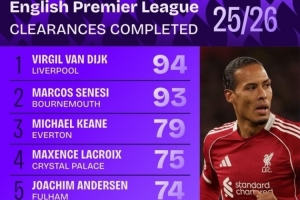 體育資訊11月11日訊 英超聯(lián)賽已經(jīng)進(jìn)行了11輪,squakwa也統(tǒng)計了本賽季英超解圍次數(shù),范戴克力壓塞內(nèi)西居首。