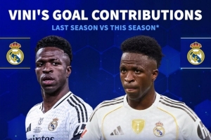稍有下滑!維尼修斯上賽季112分鐘參與1球,本賽季126分鐘參與1球