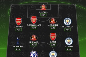 后衛(wèi):廷伯(阿森納)、加布里埃爾(阿森納)、穆基勒(桑德蘭)、奧賴?yán)牵?/p>