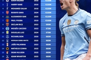 英超各隊球員歷史最高身價排行:哈蘭德2億歐居首,4人1.5億歐