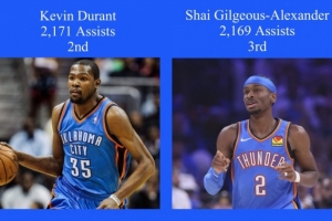 本場(chǎng)比賽賽前,亞歷山大在雷霆隊(duì)的總助攻數(shù)為2169次,杜蘭特為2171次(不包括超音速時(shí)期)。本場(chǎng)比賽,亞歷山大大概率將會(huì)過(guò)杜蘭特,成為雷霆隊(duì)史助攻第二多的球員。