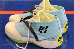 本場比賽班凱羅還上腳了一款特殊版本的個人PE球鞋,這雙Air Jordan40 Hybrid“4028”PE,融合了最新款的AJ40和之前的鞋款AJ 28,將兩者相結合推出的一款特殊鞋款。