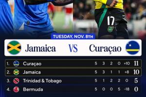 體育資訊11月14日訊 北美預(yù)選第三階段第5輪, 庫拉索客場7-0狂勝百慕大群島,牙買加客場1-1遭特立尼達(dá)和多巴哥絕平。