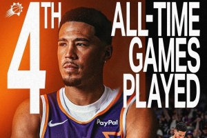 此役,布克首發(fā)。據(jù)統(tǒng)計,這是布克太陽生涯第686場比賽,超越迪克·阿斯代爾(685),升至隊史第4多。