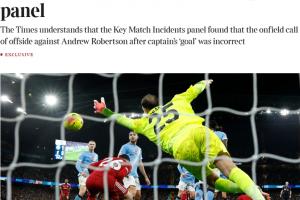 體育資訊11月14日訊 誤判!泰晤士:專家組裁定,范戴克對(duì)曼城進(jìn)球應(yīng)判有效