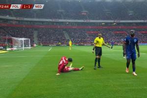 體育資訊11月15日訊 波蘭vs荷蘭第74分鐘,萊萬在爭搶時(shí)受傷,直接坐下了,但暫時(shí)沒有換人。