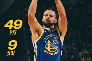 此役,庫(kù)里出戰(zhàn)36分03秒,26投16中,三分17中9,罰球8中8,砍下49分4籃板2助攻2搶斷。