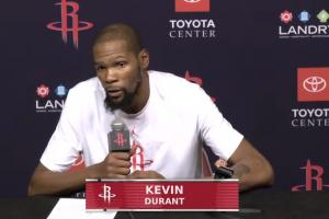 賽后,杜蘭特參加新聞發(fā)布會,接受了記者的采訪。
